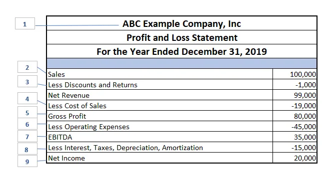 Here is an example of a P & L and an explanation of each item: